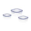The set includes airtight, leak‑proof food containers in four sizes 0.5 L, 0.9 L, 1.5 L, and 2.4 L. Made from clear, BPA‑free plastic, each container features a robust silicone‑sealed lid to keep contents fresh. The smooth, dishwasher‑safe surfaces make cleaning a breeze, while the stackable and nesting design optimizes storage in fridges, freezers, and cupboards.