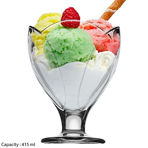 This elegant glass dessert cup features a flared, petal-like design and a sturdy footed base, perfect for serving ice cream, sundaes, or layered desserts. With a generous 415 ml capacity, it combines style and functionality, making it ideal for both everyday use and special occasions – 270cc – pack of 2 .